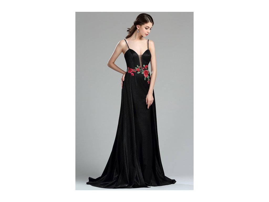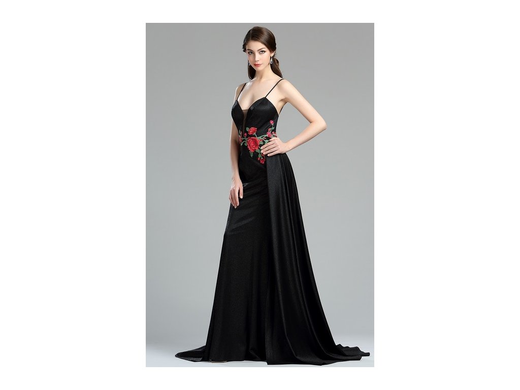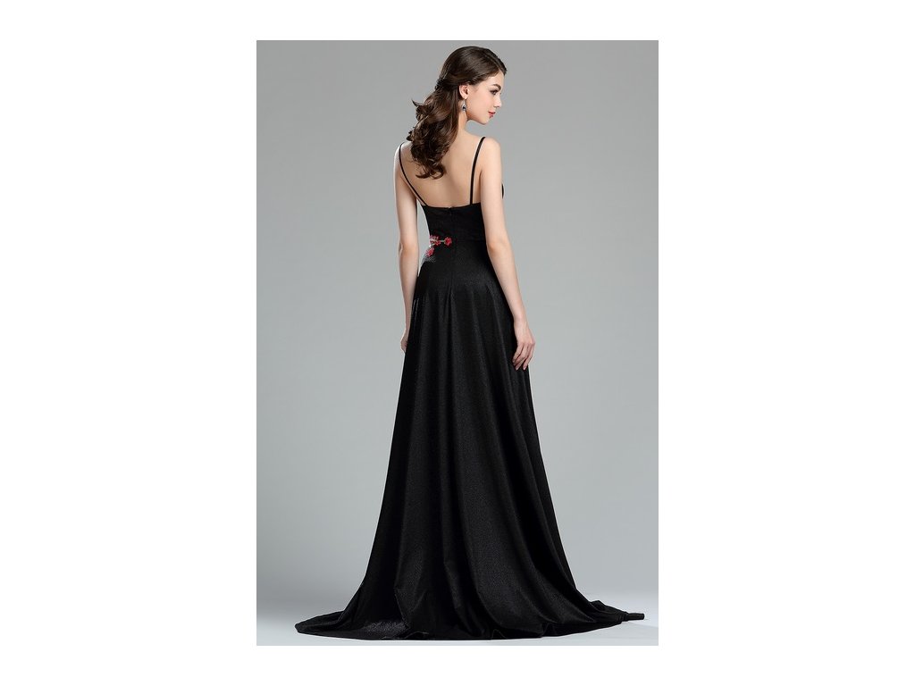 Dlouhé černé společenské šaty č. 180010