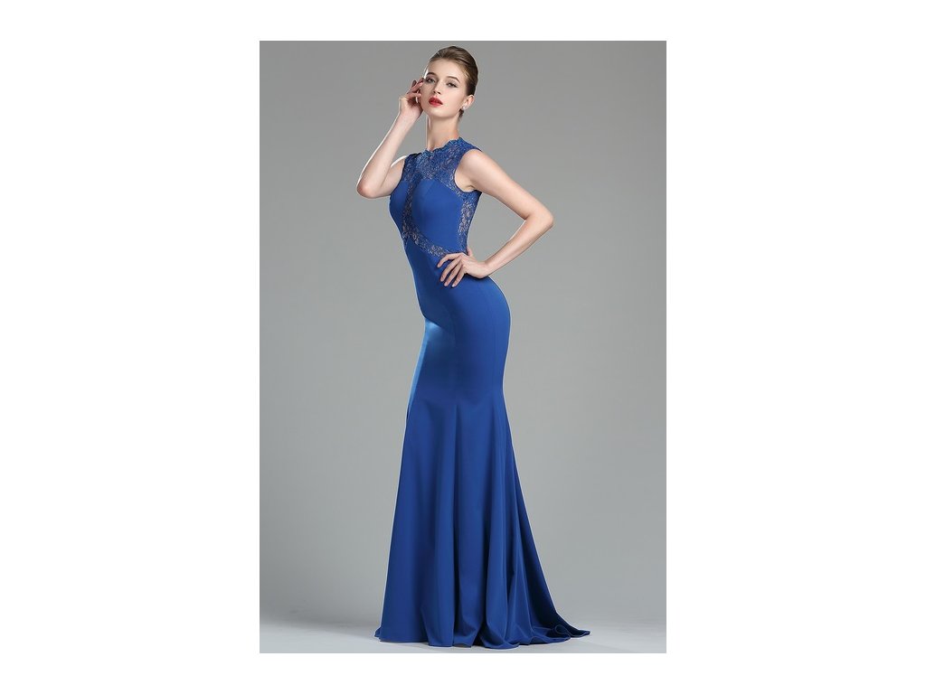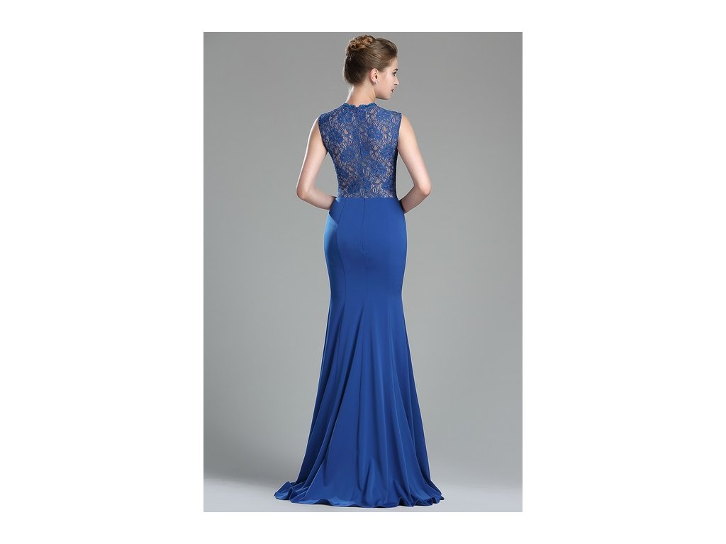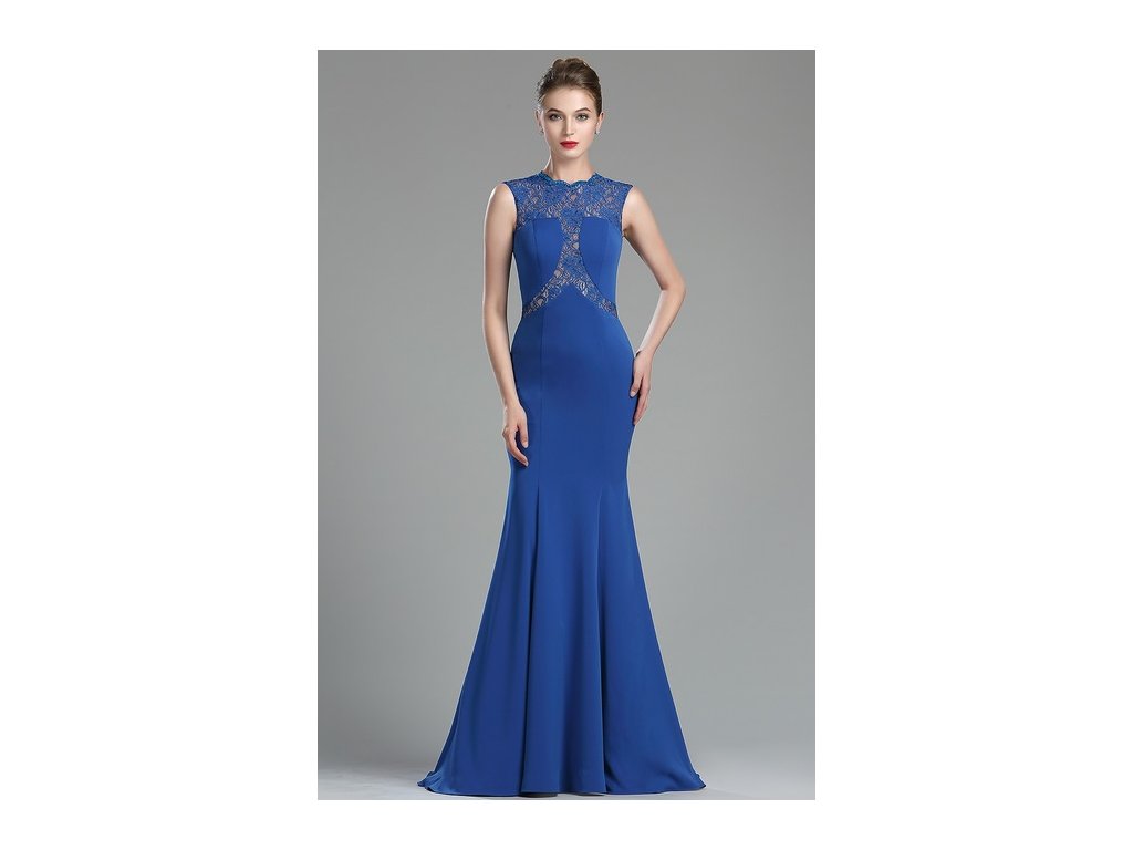 Dlouhé modré společenské šaty č. 180038