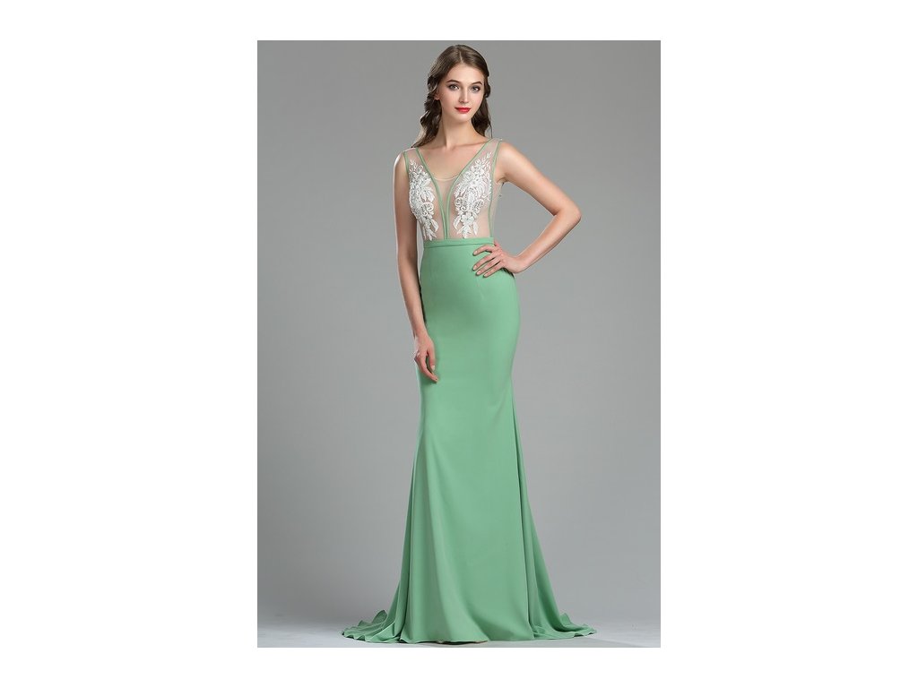 Dlouhé světle zelené společenské šaty č. 180064