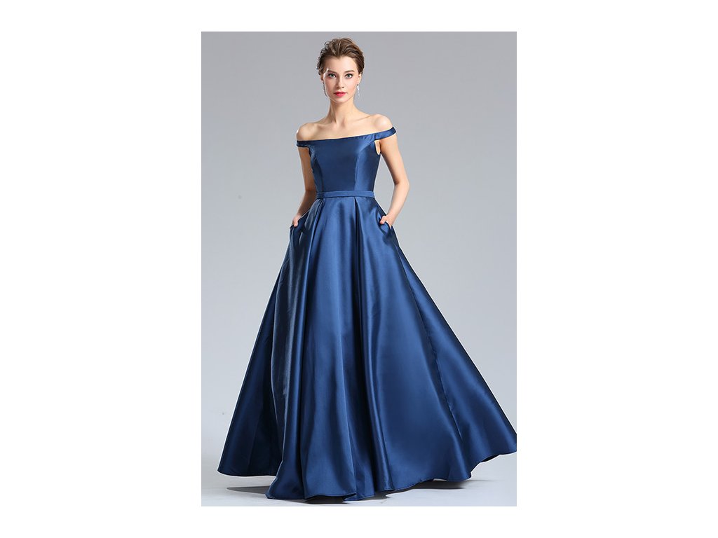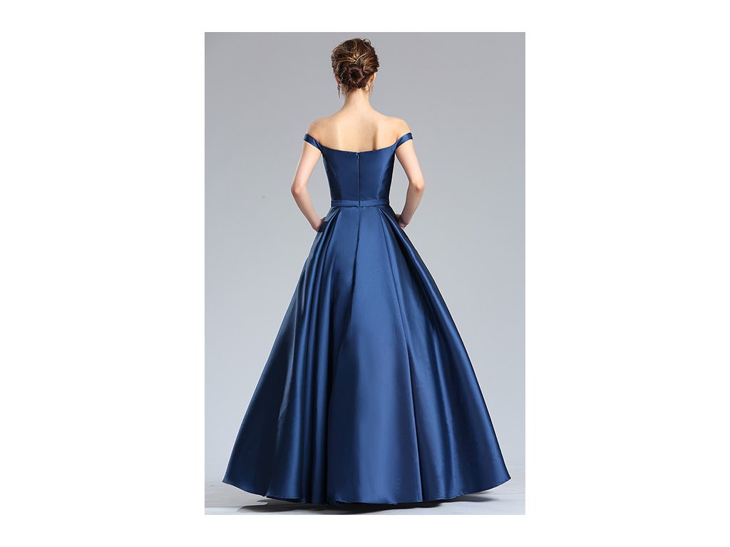 Dlouhé tmavěmodré plesové šaty č. 190003