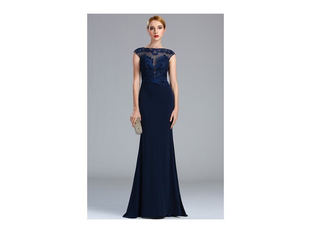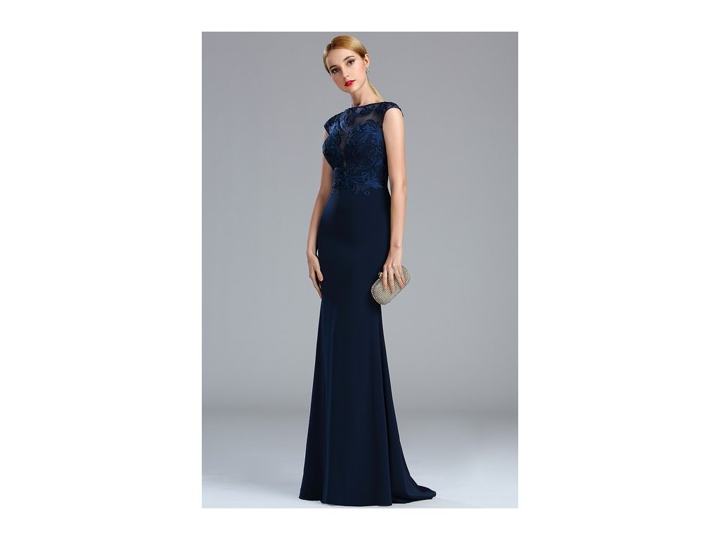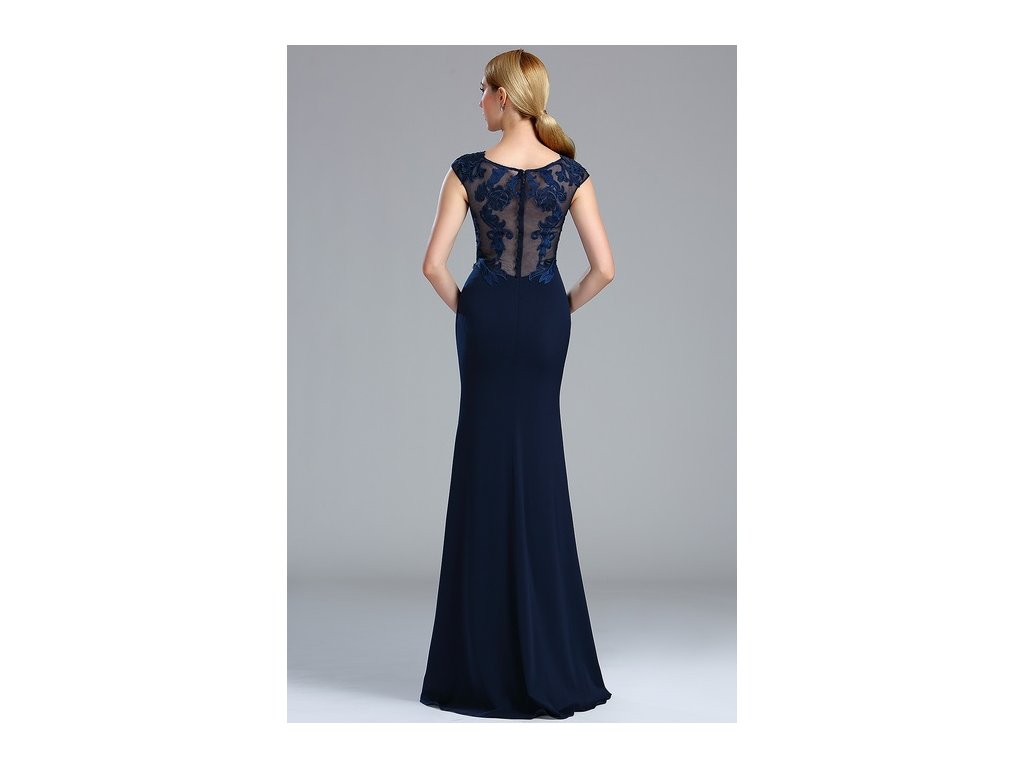 Dlouhé tmavěmodré společenské šaty č. 180022