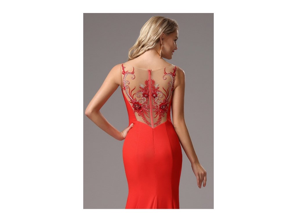 Dlouhé červené společenské šaty č. 190122