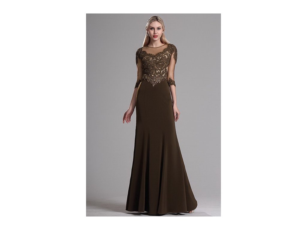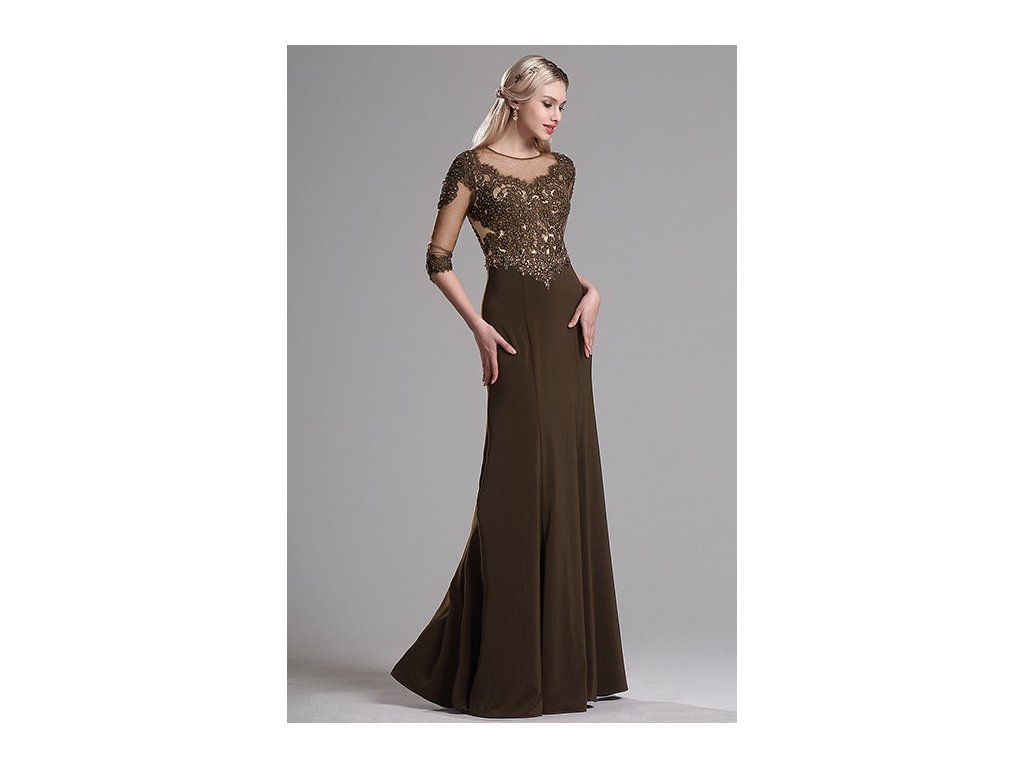Dlouhé hnědé večerní šaty č. 190084